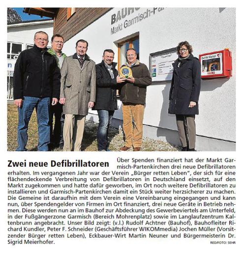 Übergabe von drei Defibrillatorenstandorten in Garmisch-Partenkirchen durch Herrn Jochen Müller (BrL) und Peter Schneider (WIKOMmedia GmbH) an die Bürgermeisterin! Zusätzlich wurde durch unsere Aktion ein weiterer Standort an der Eckbauergaststätte bei d